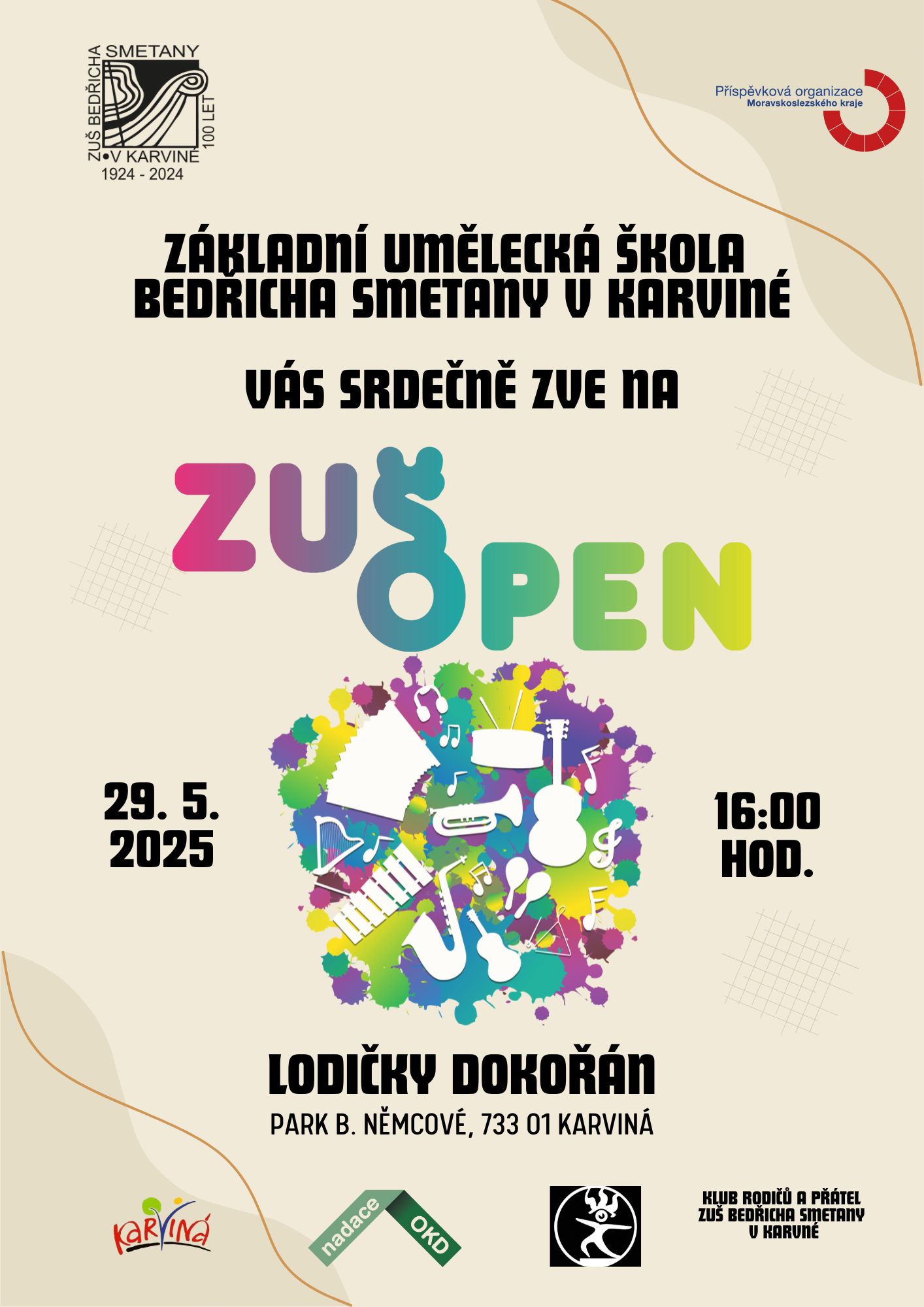 Zveme Vás na koncert v rámci festivalu ZUŠ Open, který chystáme na čtvrtek 29. května 2025 od 16,00 v areálu Lodiček v parku Boženy Němcové. Akci pořádáme ve spolupráci se…