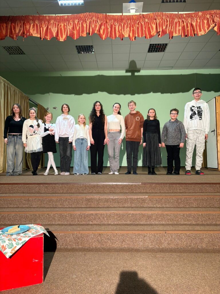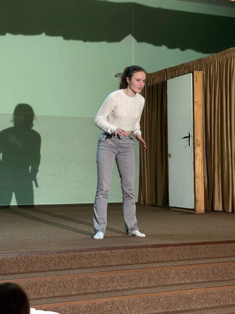 Konec února se v dramaťáku nesl v duchu oslav mluveného slova a přednesu. Před městskými a okresními recitačními přehlídkami se žáci literárně dramatického oboru tradičně setkali na poetické čajovně – na domovské půdě v dramaťáckém sále naší školy. Uvařil se čaj, sešli se mladší i starší recitátoři a jeden po druhém předstoupili se svými texty před publikem. Často je vůbec poprvé pronesli veřejně, před rodinou, přáteli a spolužáky z dramatického kroužku